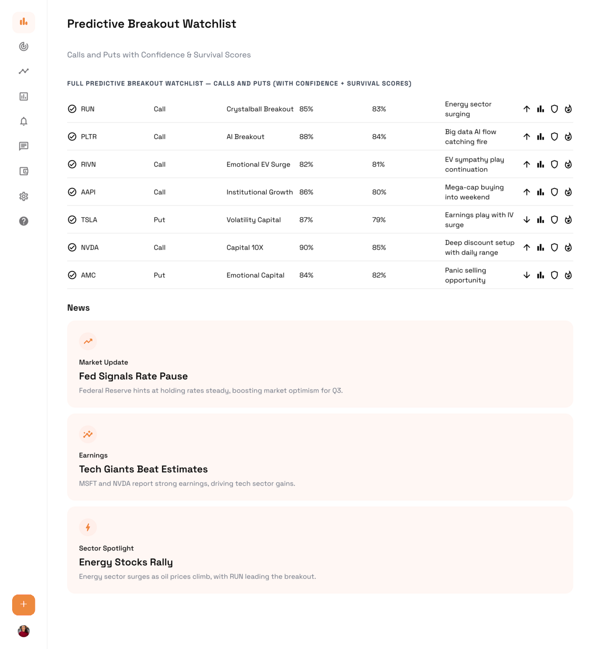 7 Specialized Engines: Deploy predictive models like Capital Strike, Volatility Capital, and Emotional Capital to pinpoint high-probability trades.
